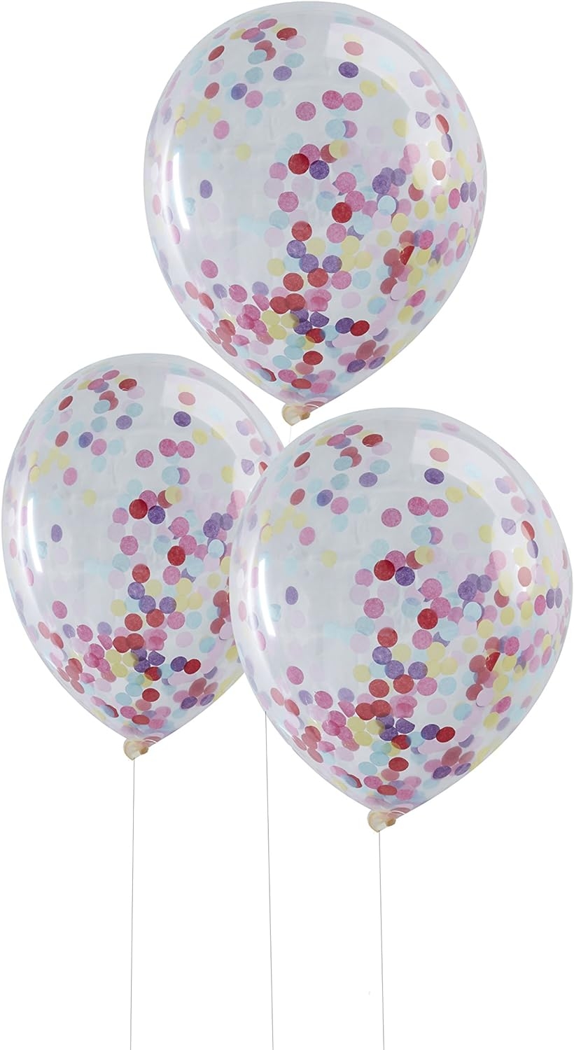 Balony dekoracyjne na imprezę przyjęcie z konfetti ( 5 szt )