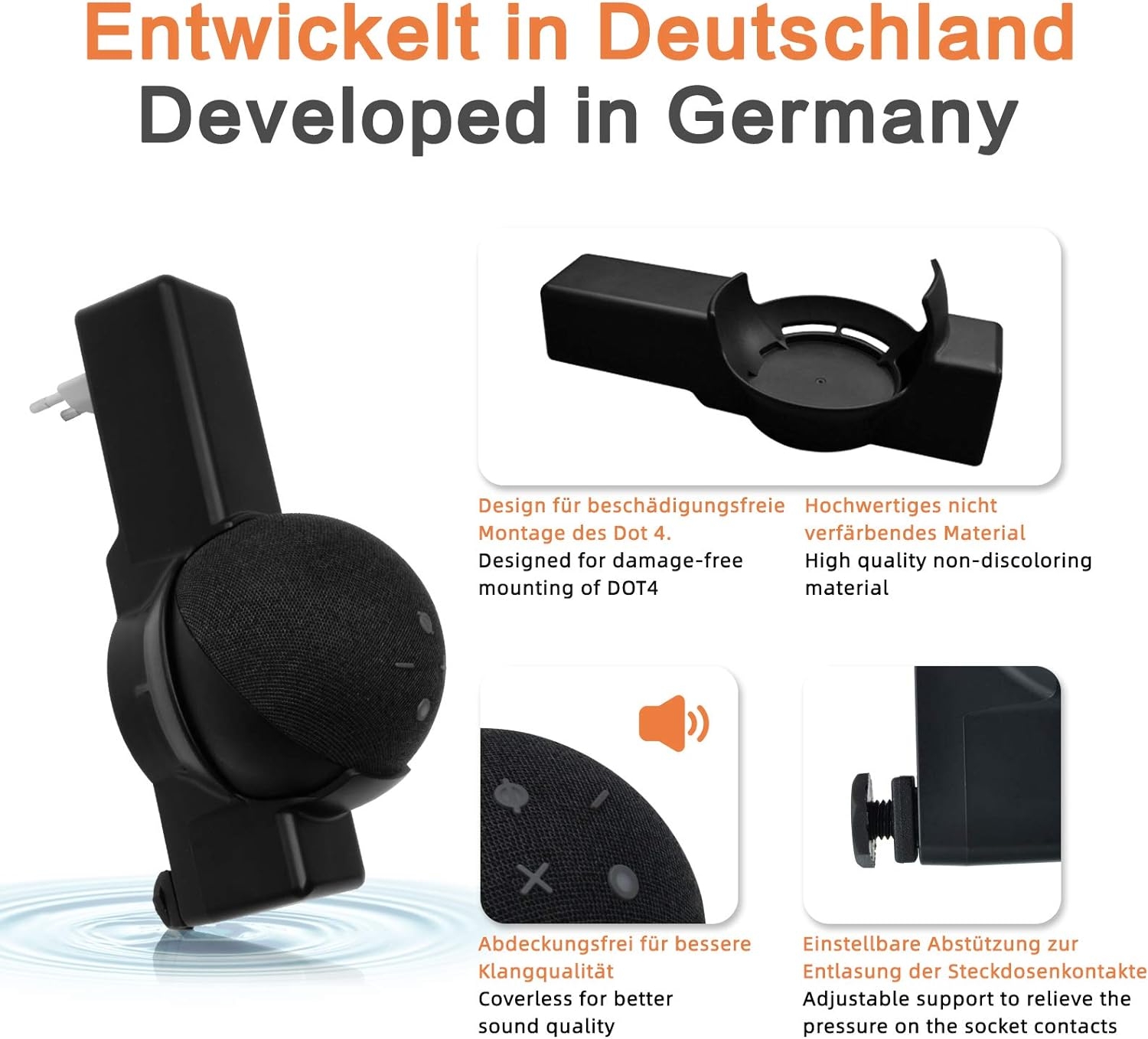 Uchwyt ścienny do głośnika (5./4. generacji) (kropka nie jest dołączona) ma opatentowaną konstrukcję o ponadczasowej, nowoczesnej estetyce i doskonałej funkcjonalności. Wysokiej jakości materiał jest trudnopalny i odporny na promieniowanie UV.