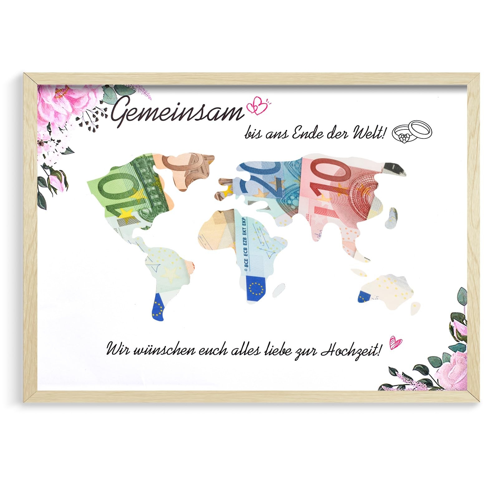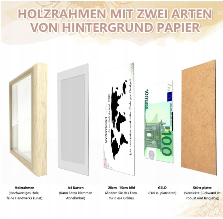 Drewniana ramka na zdjęcia prezent pieniężny na ślub mapa świata A4