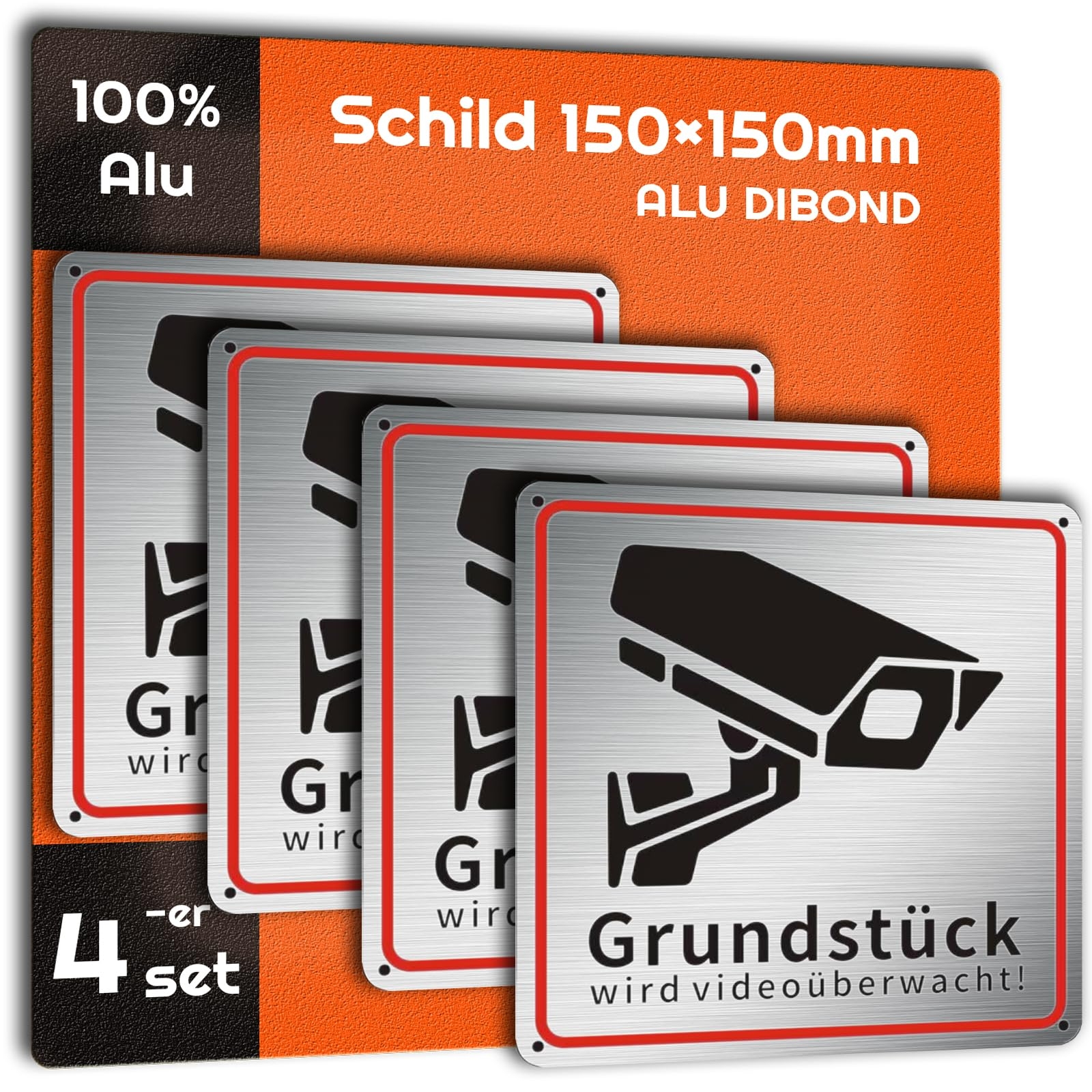 Tabliczka obiekt monitorowany - metalowa - 15 x 15 cm - po niemiecku.