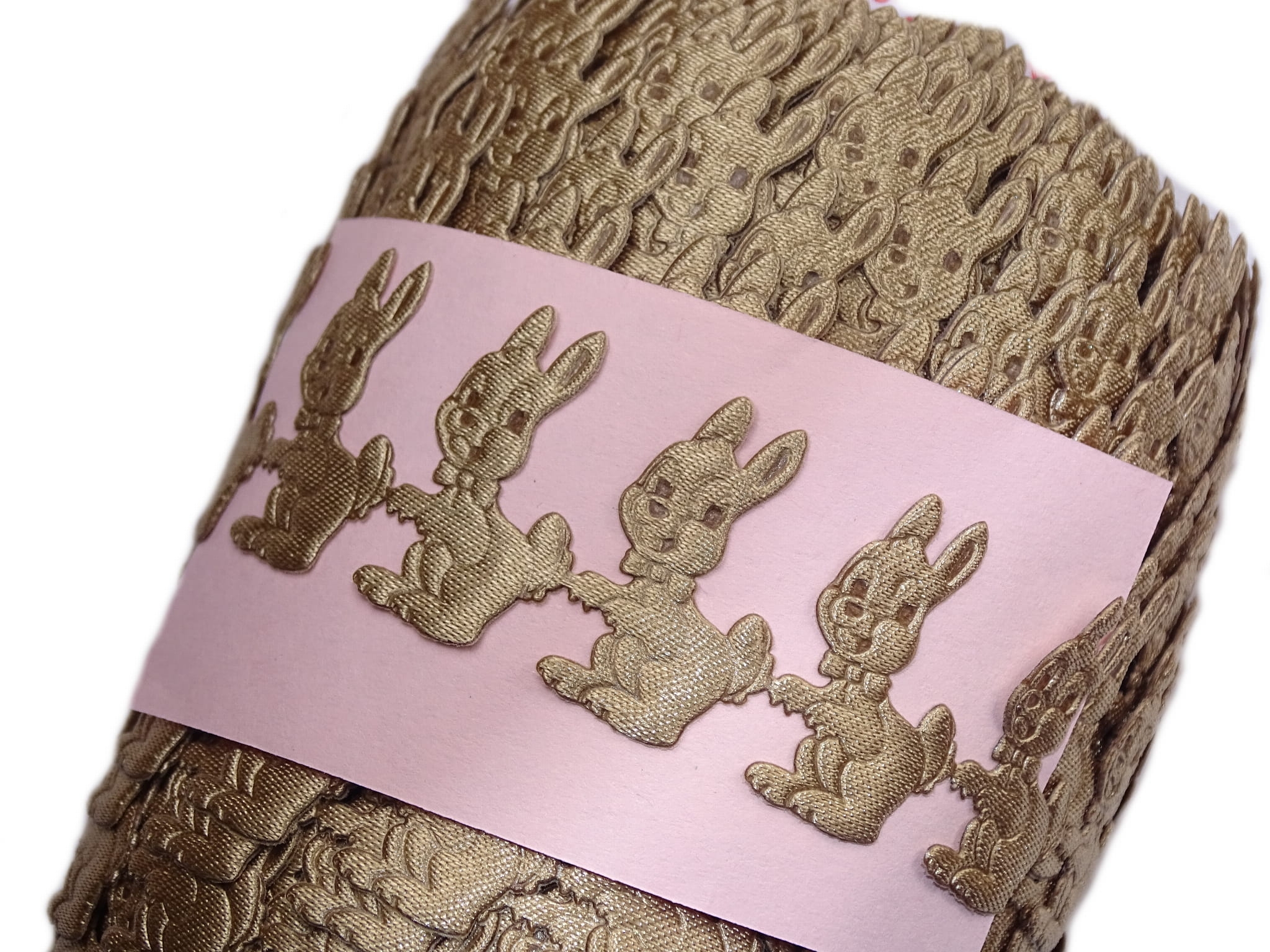 Taśma satynowa wykonana z połączonych zajączków.