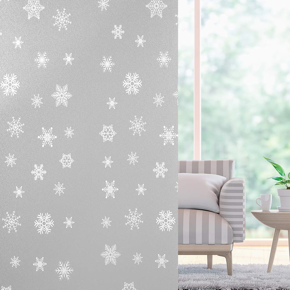 • Folia okienna z wzorem śniegu  Bez bąbelków i łatwa w cięciu : Wystarczy spryskać większą ilością wody, aby przykleić ją kartą kredytową, można ją przyciąć, aby pasowała do każdego okna, nadaje się do majsterkowania.