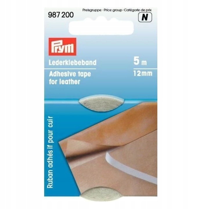 Taśma dwustronna z klejem do skóry PRYM - 12 mm - 987200 - 5mb/opak.